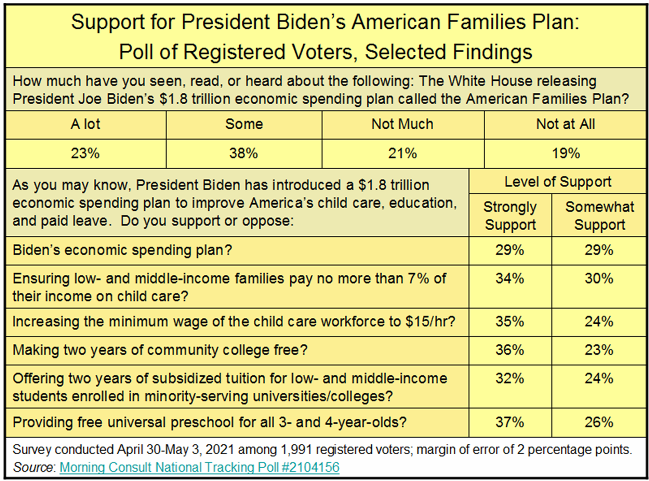 “Biden’s $1.8 Trillion American Families Plan Is Supported by Nearly 60% of Voters” by Claire Williams/Morning Consult. May 5, 2021