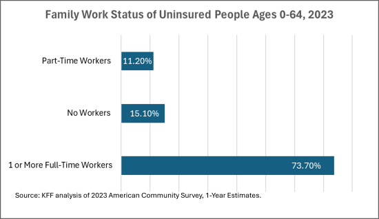 Most of the uninsured belong to families with at least full-time worker:
